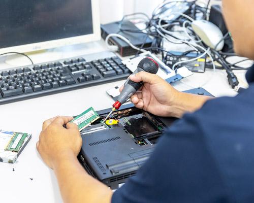 僕たちの仕事は、パソコンや複合機といったOA機器の販売から保守、ときにはオフィスや施設のネットワーク構築まで、お客様の「働く環境」を支えることです。特にやりがいを感じるのは、トラブル解決のために現場へ駆けつけたときですね。